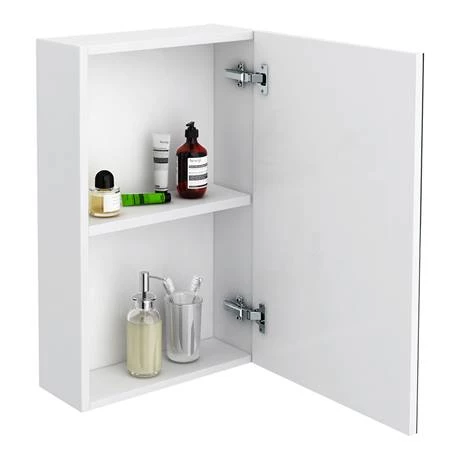 A high quality Gloss White 450mm wide mirrored cabinet, part of the Brooklyn modular furniture range. Features a soft close door and provides plenty of space for toiletries, the Brooklyn wall hung mirror cabinet is perfect for adding modern style to any bathroom. Combines up to date looks with practical storage.