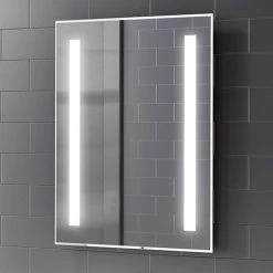 Bring modern design and contemporary good looks to your bathroom with this stunning battery operated universal (landscape or horizontal fitting) bathroom mirror with in-built lighting. This stylish battery operated bathroom mirror can be installed by anyone without the need of an electrician. The battery operated led mirror features two strips of light that run along the longer edges of the mirror providing direct bright light with an ON/OFF rocker switch hidden on the side.