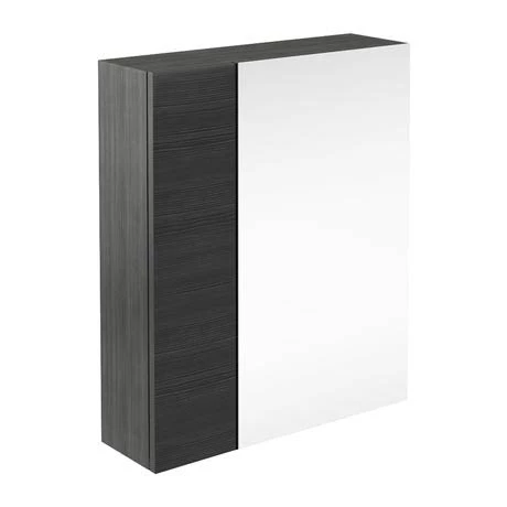 A high quality textured wood effect Hacienda Black mirror cabinet with 150mm slimline door fascia, part of the Brooklyn modular furniture range.