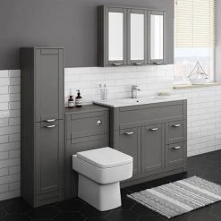 Embrace a traditional interior style in your bathroom with the Chatsworth White Two Door Mirror Cabinet. The tongue and groove side panelling and chic satin white create a countryside elegance. It features classic handles with a matt black finish. More than just a design feature – the Chatsworth bathroom cabinet has plenty of space for your cosmetics and soft closing doors for a peaceful environment. Pair your wall hung bathroom mirror cabinet with the Chatsworth Traditional White Vanity for a matching look in your bathroom.