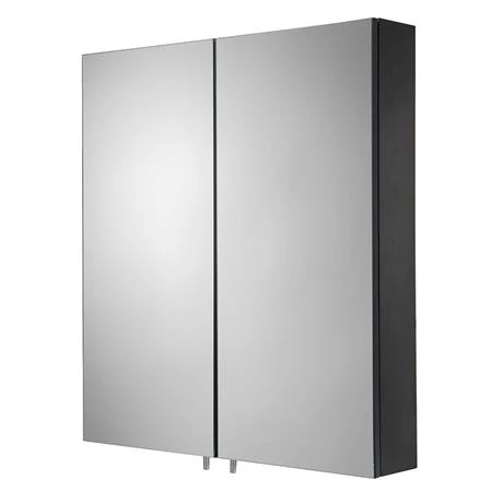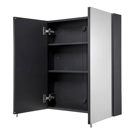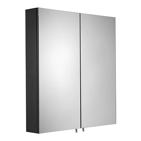 - Matt black steel cabinet with mirrored doors