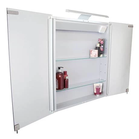 The Sudbury mirror cabinet is a double door wall hung bathroom unit that provides excellent storage capacity concealed by two mirrored doors and an overhead light. The cabinet has two internal glass shelves for storage and an integrated shaver socket suitable for electric razors, toothbrush or other low power devices. It features the innovative Hang ‘N’ Lock system, allowing large bathroom accessories to be fixed by one person. The bracket system attaches to the wall and can be adjusted with the built-in spirit level. Then just simply hang the product and lock securely in place.