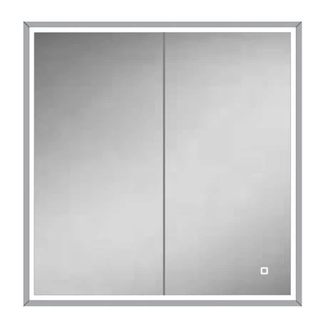 The Vanquish mirror cabinet is designed to be recessed into a wall for a flush finish. It has many features including integrated charging points for razors and toothbrushes, heated pads to keep the glass clear and an LED mirror border with colour temperature changing lighting.