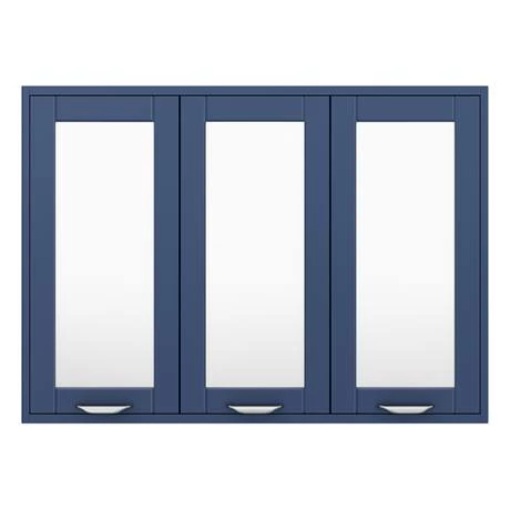 The shaker inspired Keswick collection of bathroom furniture effortlessly blends modern and traditional design elements, featuring classic blue shaker-style styling with three soft close mirrored panel doors with contemporary minimalist chrome handles.
