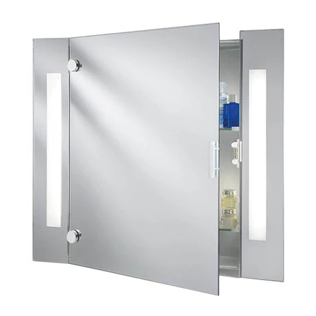 This illuminated bathroom mirror cabinet with shaver socket will make a stylish addition to any bathroom. The integrated shaver socket is perfect for your bathroom appliances while the sleek metal cabinet is framed by two strips of light which are easily turned on and off by a rocker switch. It’s IP44 rating makes is splashproof and suitable for use in the bathroom.