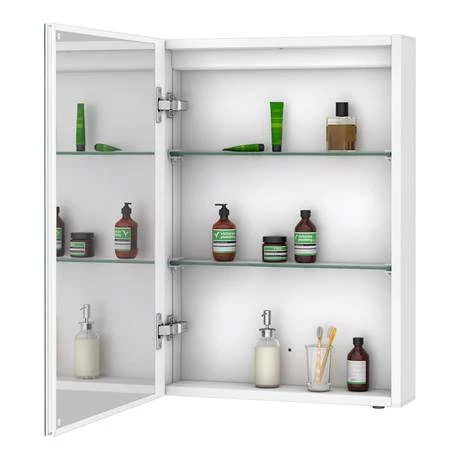 Upgrade to an intelligent bathroom with the Toreno LED Illuminated Mirror Cabinet. Your reflection stays crisp and clear in this illuminated bathroom mirror thanks to demisting pads that prevent fogging. An infrared motion sensor saves you having to touch the surface to switch it on, helping keep this 500mm wide LED bathroom mirror smudge and fingerprint free. The cabinet also opens to reveal ample storage space, with hardwearing tempered glass shelves that you can easily move up or down to accommodate larger bottles.
