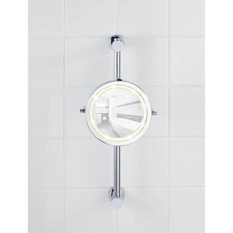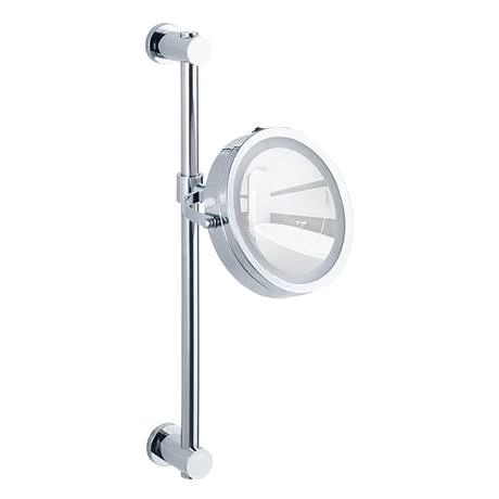 The round mirror has efficient LED technology which produces a high-quality light effect and can be switched on and off at the push of a button. Thanks to the LED technology, an extremely long lifetime of the lighting function is achieved. The mirror has a 100% mirror surface as well as a 5x magnification on the back.
